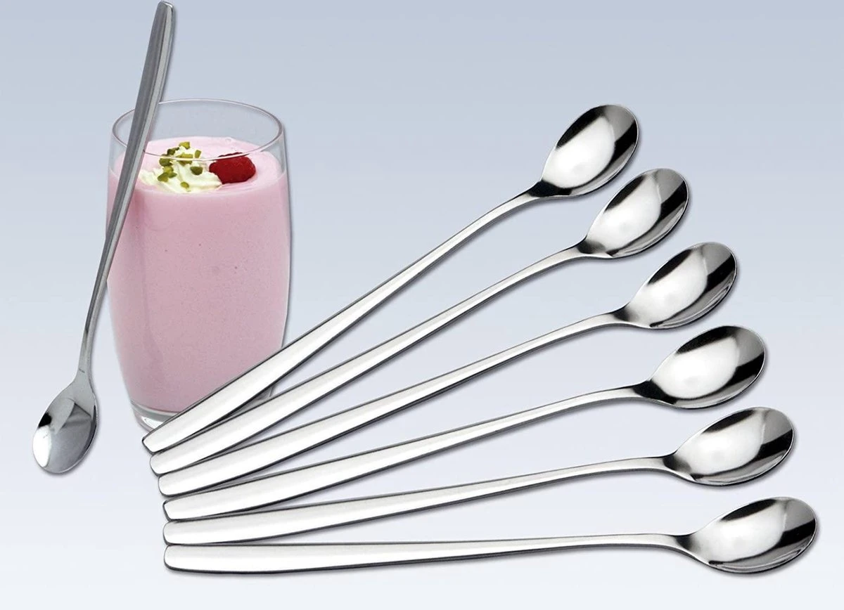 Merkloos Latte Macchiato Lepels – RVS Lange Yoghurt, Dessert Of Koffie Lepeltjes – Set Van 6 Stuks