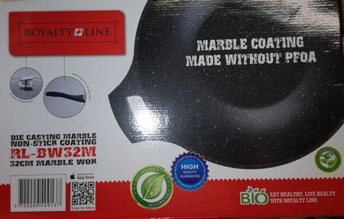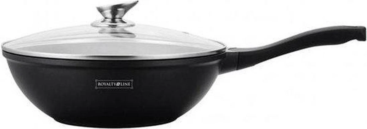 Royalty Line Marble Coating Wok – Met Glazen Deksel – Zwart – 30 Cm