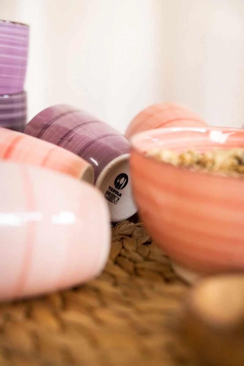 Als je graag rustig servies hebt, maar niet iets wat snel verveeld, dan is deze collectie van Studio Tavola wellicht iets voor jou. Deze espressokopjes komen in zes verschillende kleuren roze, die zorgvuldig zijn uitgezocht, waardoor het toch een geheel blijft. Let wel op: deze kopjes worden gemixt geleverd, er kan dus geen kleur gekozen worden. Combineer de espressokopjes met bijvoorbeeld de dinerborden, diepe borden of kleine kommen van de Mykonos collectie.